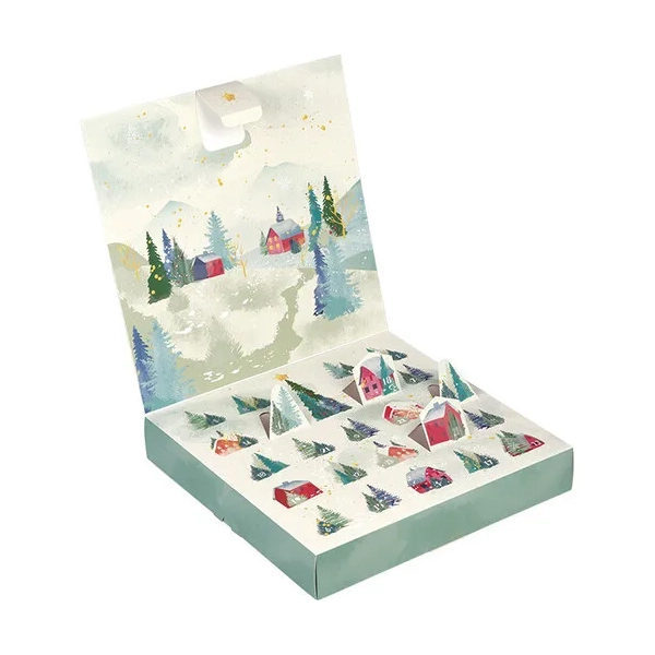O Calendário de Advento Aldeia de Natal é a escolha ideal para transformar a contagem decrescente até ao Natal numa experiência única, repleta de encanto e sofisticação. Concebido em cartão resistente e de alta qualidade, este calendário combina praticidade, durabilidade e um design festivo pensado para valorizar ao máximo cada detalhe da época natalícia.
