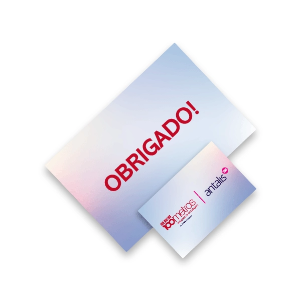 Na 100 metros utilizamos o papel couché mate de 300gr. O papel destes cartões proporciona uma superfície de impressão mais uniforme, o que permite uma impressão de maior qualidade. Possibilidade de impressão a 1 ou 2 faces.