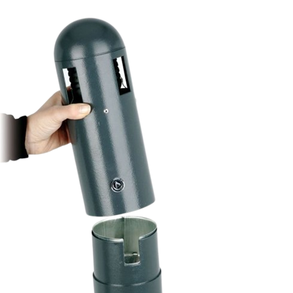 Com dimensões de Ø300 x 1040 mm e uma capacidade de 3 litros, permite a recolha de aproximadamente 375 beatas, reduzindo a necessidade de esvaziamento frequente. A tampa removível facilita o acesso ao interior, tornando as operações de limpeza e manutenção rápidas e práticas.