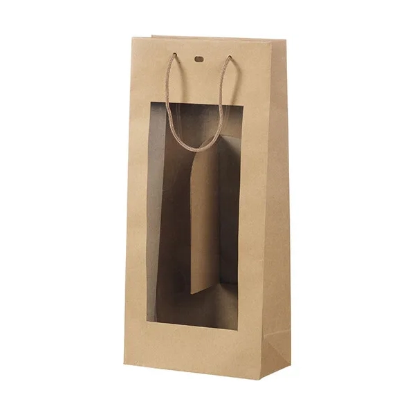 O Saco para Garrafas Kraft com Janela é indispensável para comerciantes e marcas que desejam apresentar os seus vinhos e bebidas espirituosas com elegância e qualidade. Produzido em papel kraft resistente, este saco alia a robustez do material a um design natural e sofisticado, ideal para realçar os produtos em qualquer ocasião.