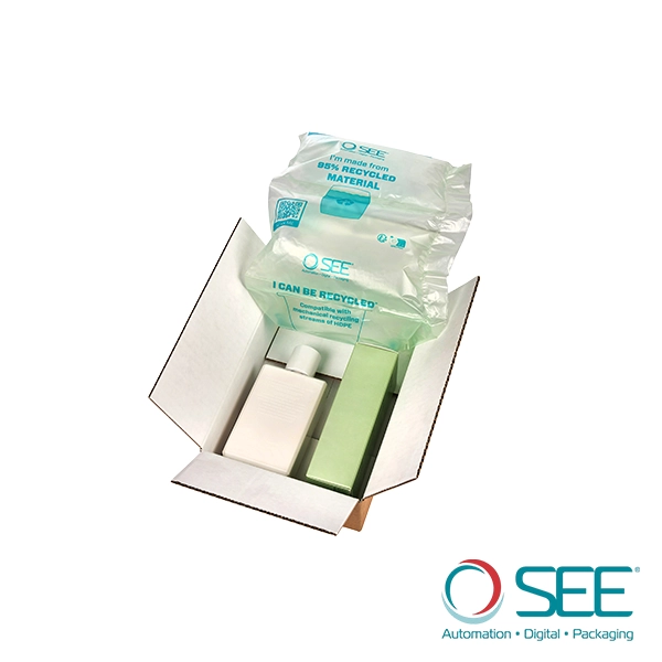 As almofadas de ar BUBBLE WRAP® com conteúdo reciclado foram concebidas para enchimento de espaços vazios e proteção de mercadorias durante o transporte, reduzindo devoluções e aumentando a satisfação do cliente.